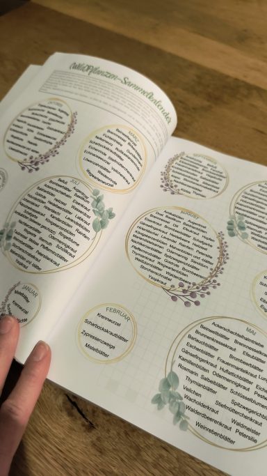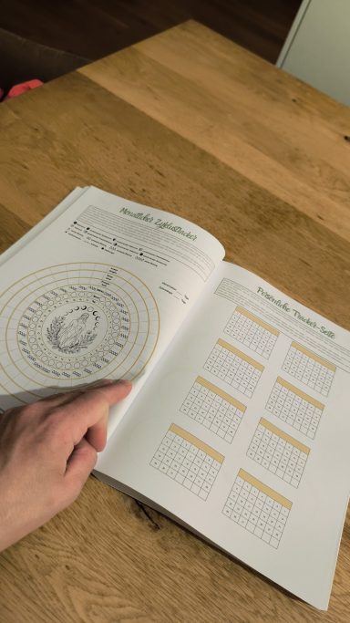 Das Journal bietet Raum für Pflanzenbeobachtungen, Kräuterwissen und deine eigene Beziehung zu Heilpflanzen, Wildkräutern und der Natur. Gleichzeitig unterstützt es dich mit Trackern für Zyklus, Stimmung, Energie und Selbstfürsorge, sodass du dich selbst besser verstehst und liebevoll begleitest. Die Verbindung von Zyklusbewusstsein, Mondenergie und Achtsamkeit stärkt dein Vertrauen in deinen Körper und deine natürlichen Rhythmen.