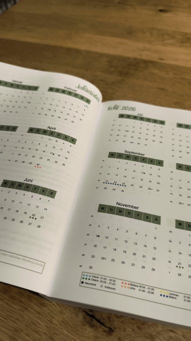 Dich erwartet ein durchdachtes Naturjournal, das dich Monat für Monat durch den Jahreskreis, die Mondphasen und deine persönliche Entwicklung führt.